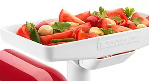 Work with larger batches of ingredients by attaching the food tray to your food grinder, fruit and vegetable strainer or sausage stuffer attachments.