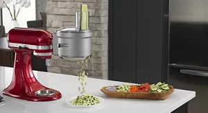 Dice, slice, shred and julienne your favorite fruits, vegetables and hard cheeses. Powered by the KitchenAid® Stand Mixer, the Food Processor with Commercial Style Dicing Kit will have you processing in no time. The exclusive ExactSlice™ System allows you to slice from thick to thin with one slide of the lever. This attachment even works great to quickly and easily make cauliflower rice, a low carb favorite and alternative to traditional rice.